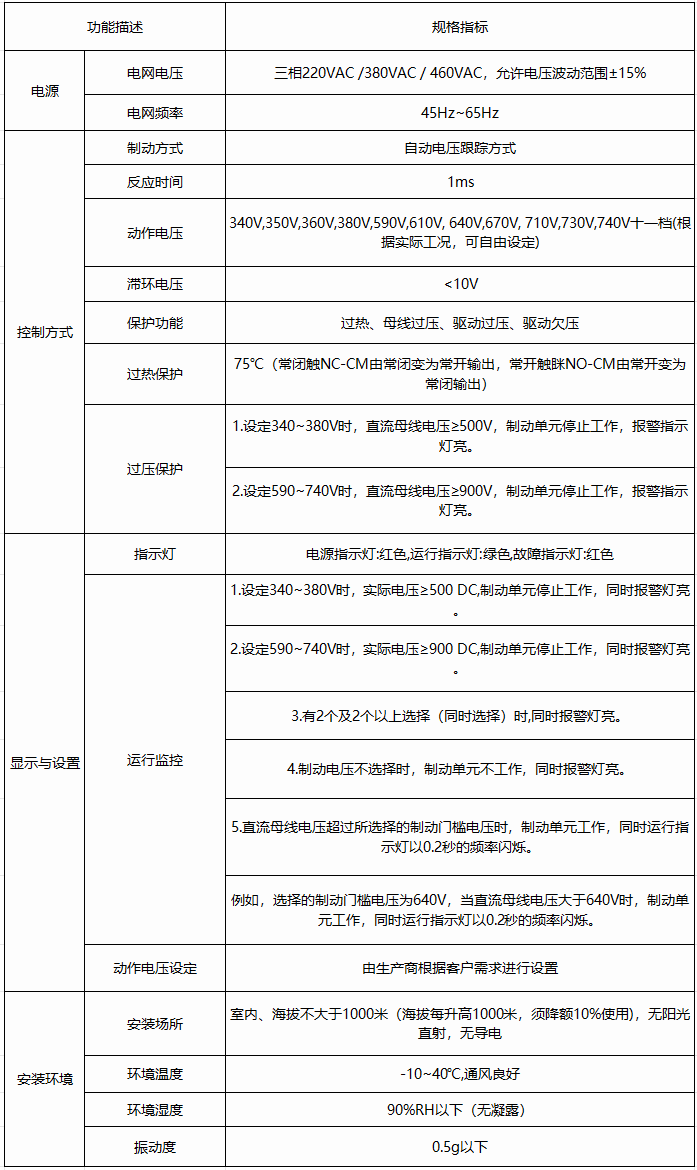 W7系列制动单元主要应用于变频器或伺服等驱动产品(后续简称驱动器)需急降速、定位、制动的场合;